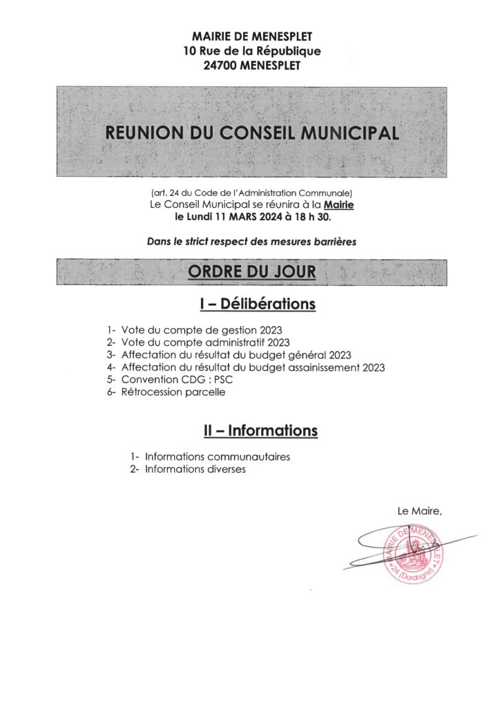 Contact Mairie : mairiemenesplet@wanadoo.fr