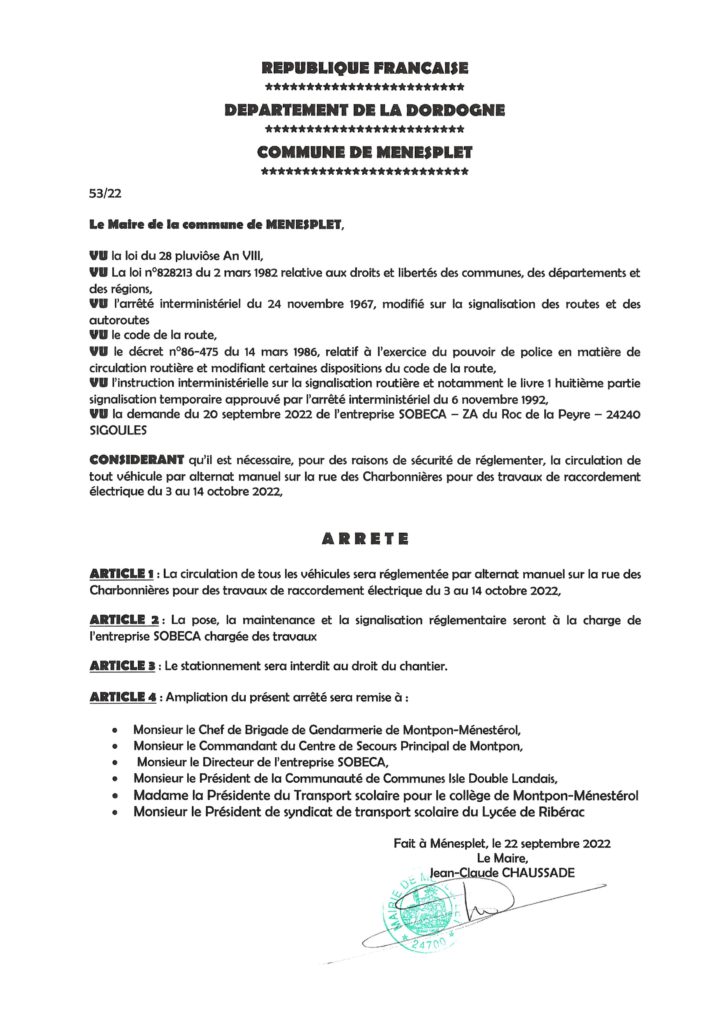 Tél : 05.53.80.35.30 Fax : 05.53.80.36.62 Contact Mairie : mairiemenesplet@wanadoo.fr Courriel : contact@menesplet.fr