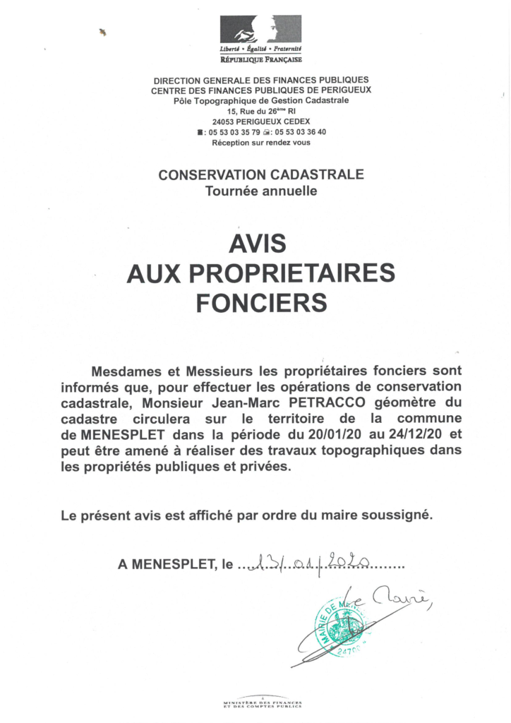Accueil → Informations → AVIS AUX PROPRIETAIRES FONCIERS