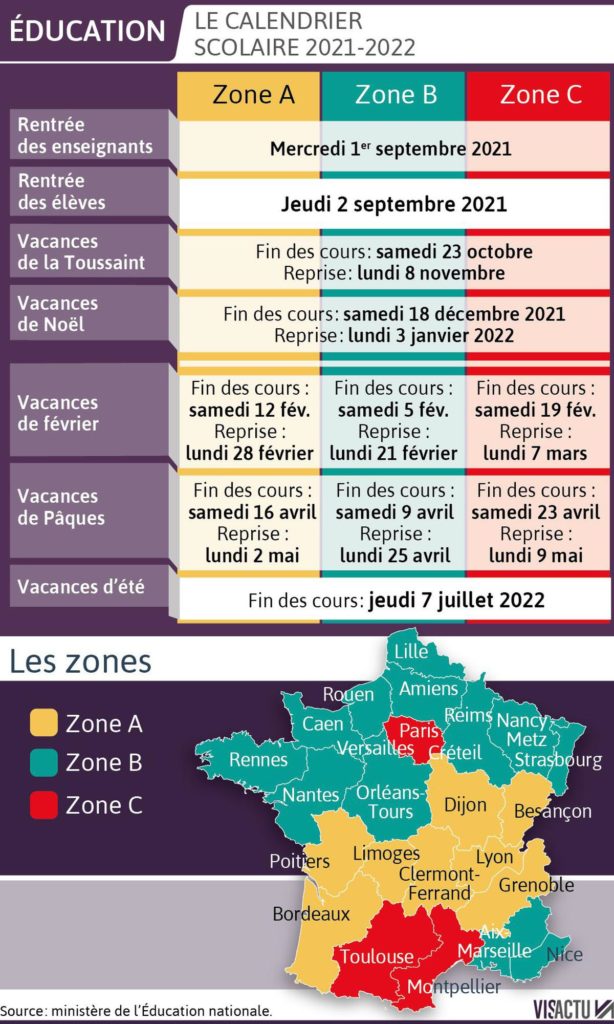 Accueil → Informations → Calendrier scolaire 2021-2022