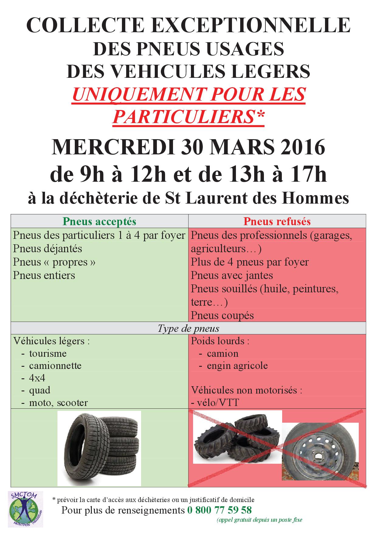Suite à de nombreuses demandes, le SMCTOM organise une collecte exceptionnelle des pneus usagés des véhicules légers (VL) pour les particuliers*