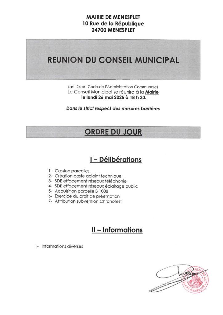 Accueil → Actualités → Conseil Municipal, lundi 26 mai