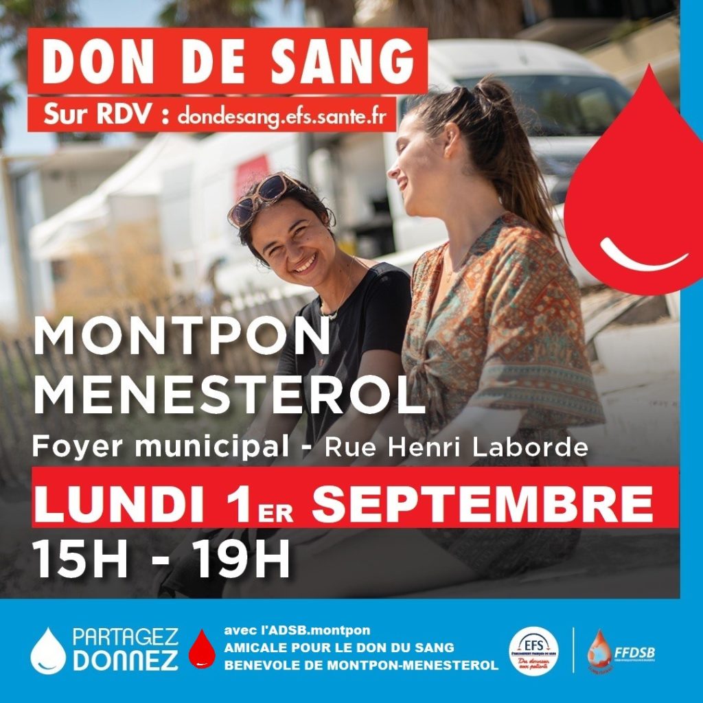 Accueil → Actualités → Don de sang, le 1-09-2025 à Montpon-Ménestérol