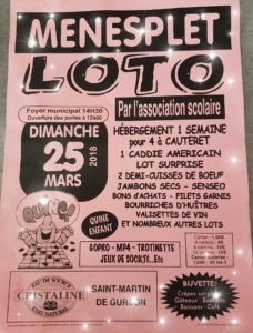 Dimanche 25 mars – 14h30: Loto de l’association scolaire