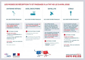 Ce changement de norme de la télévision implique le cas échéant une mise à niveau de votre équipement TV pour continuer à recevoir la télévision après le 5 avril 2016.
