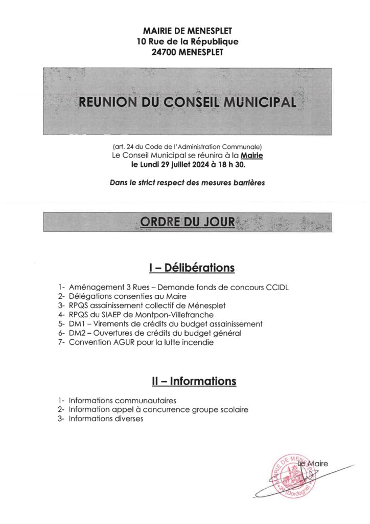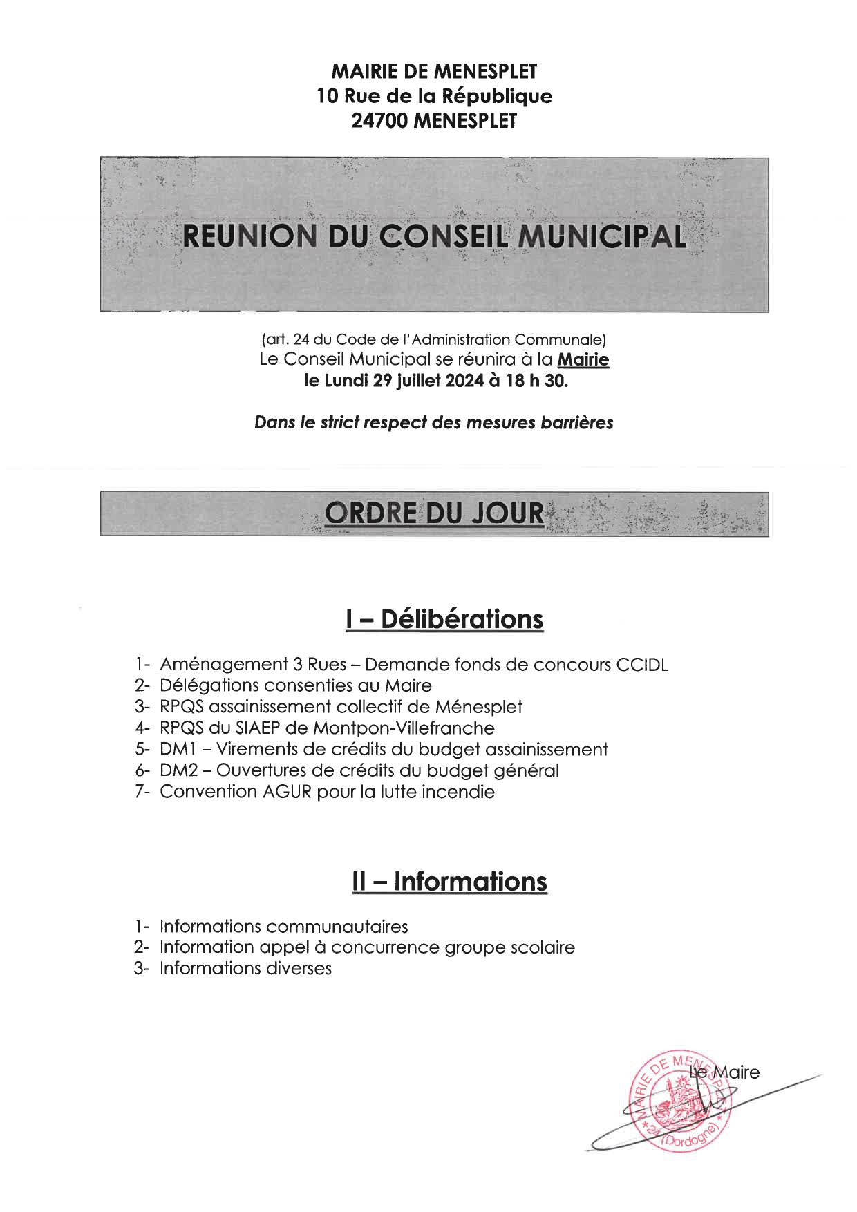 Tél : 05.53.80.35.30 Fax : 05.53.80.36.62 Contact Mairie : mairiemenesplet@wanadoo.fr Courriel : contact@menesplet.fr