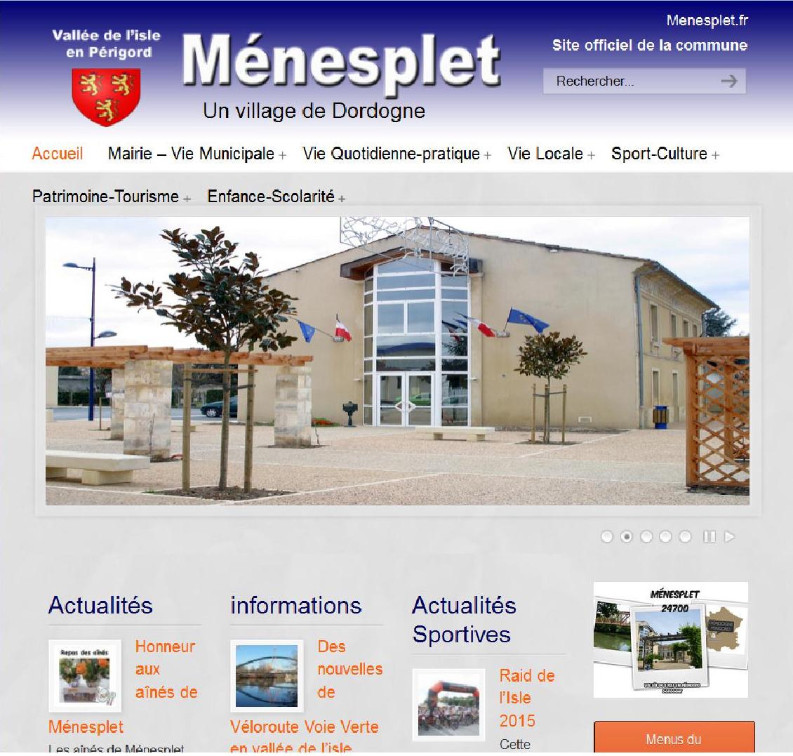 Le Site menesplet.fr est le Site d’information et de communication de la commune et de la Mairie de Ménesplet. Le Site de la commune ne mentionne pas de faits divers, ceux-ci étant relayés par les médias professionnels et journaux. De nombreuses pages sont déjà accessibles, certaines sont en cours de rédaction et nous vous remercions de votre patience.