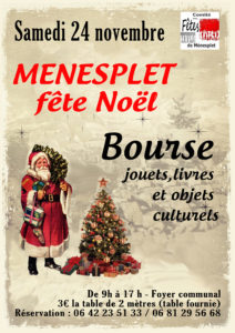 Accueil de exposants à partir de 7 heures. 3 euros la table de 2 mètres fournie.