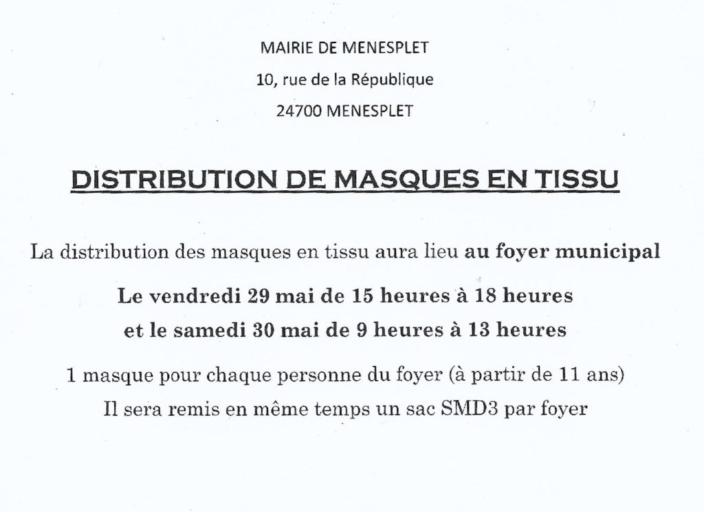 Accueil → Actualités → Distribution de masques en tissu et des sacs SMD3