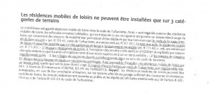Législation pour les RESIDENCES DE LOISIRS (mobil-home)