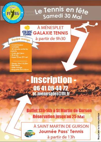 A Ménesplet, Samedi 30 Mai, matinée GALAXIE TENNIS (9ans) équipe Orange, à partir de 9h30.